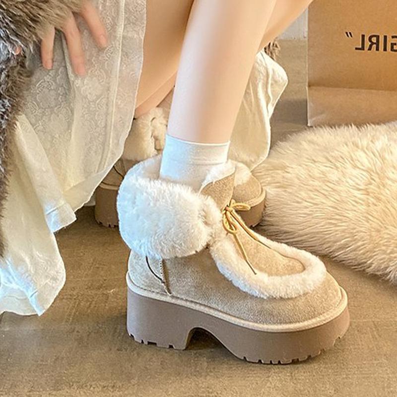 Ankle Women's Snow Boots Fur Fashion High Heels Shoes Chunky Warm Winter Boots Designer Short Plush Short Botas De Mujer