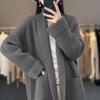 Autumn and Winter Korean Version Medium Long V-neck Sweater Women's Coat Slimming Lazy Style Knitted Cardigan