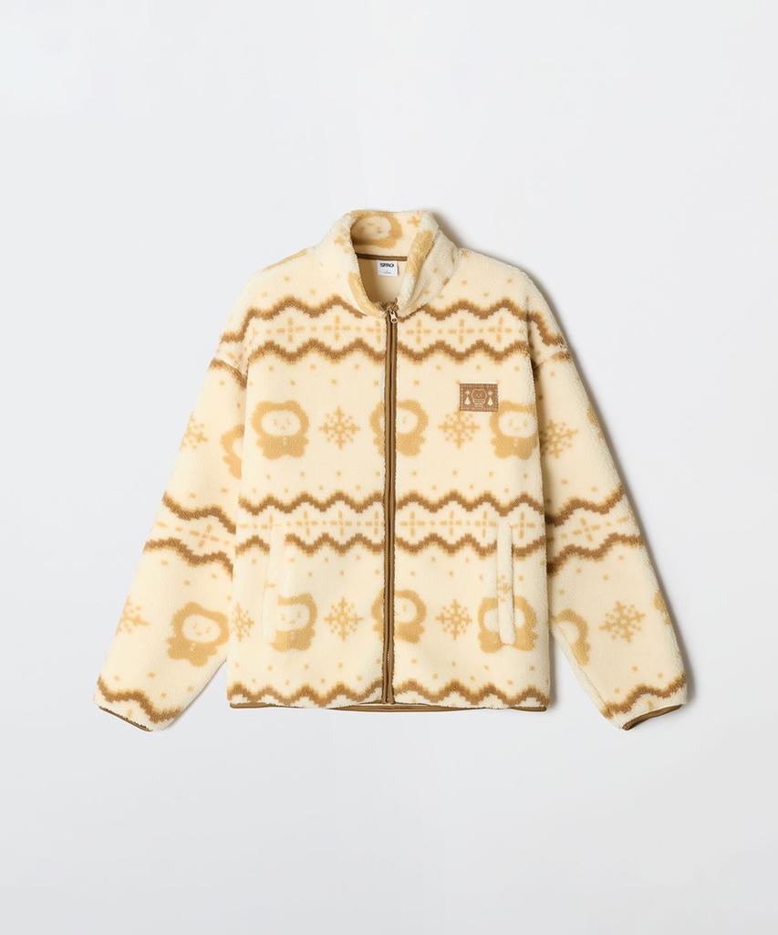 Oversized sherpa fleece jacket featuring the popular Korean character “Manggeurujin Gom” embroidered for a cute, cozy look.