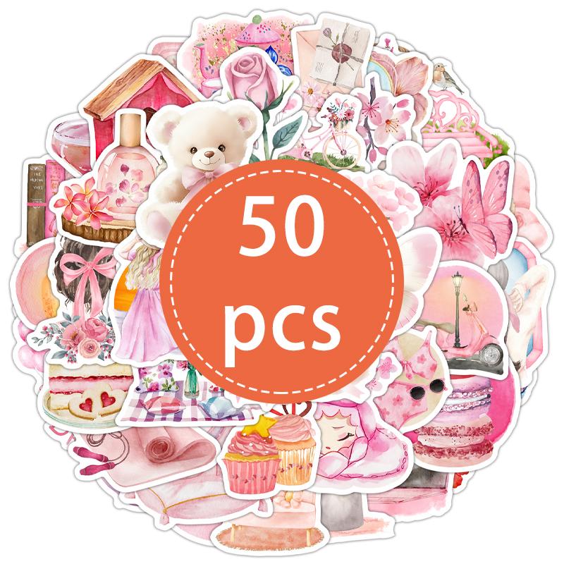 50PCS Pink Aesthetic Stickers for Girl Cute Pink Vinyl Waterproof Decals Decor for Scrapbook Mobile Phone Computer Skateboard