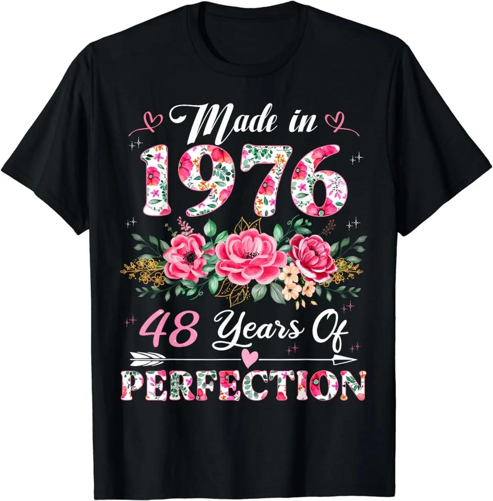 Funny Birthday Gifts 48 Year Old Made In 1976 Floral 48th Women Custom Printed T-Shirt Streetwear Graphic T Shirts
