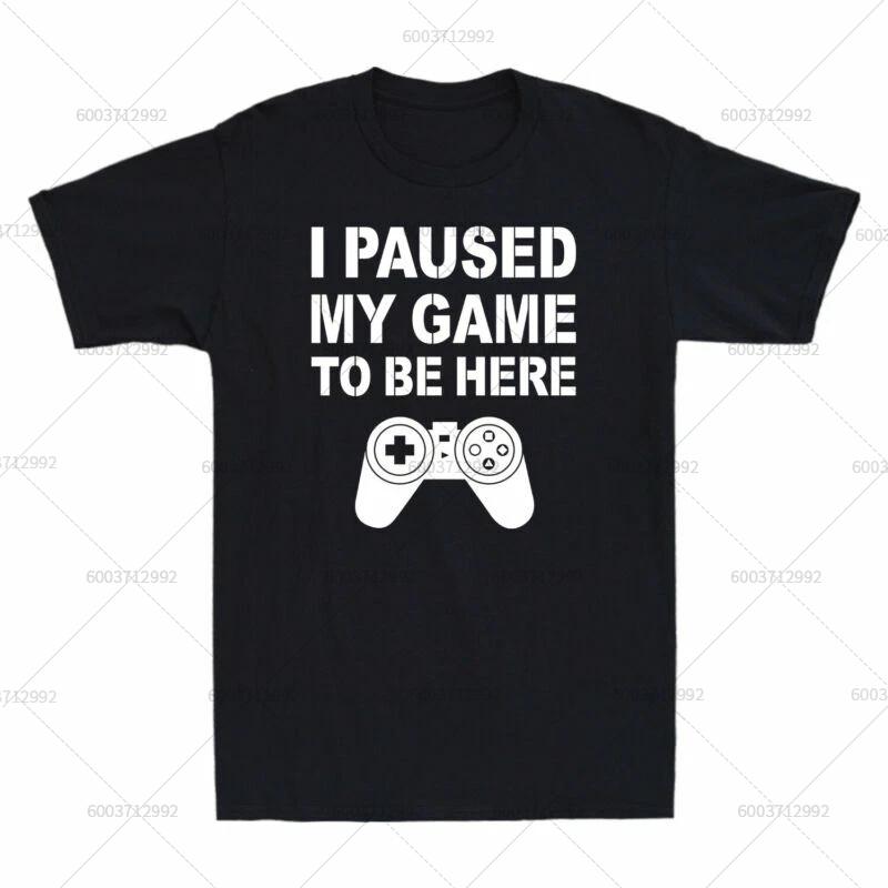 T-Shirt Men's Streetwear I PAUSED MY GAME TO BE HERE Meme Gift Vintage Cotton Short Sleeve Tees Women Oversized Harajuku O-Neck
