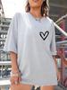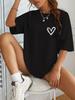 With Heart Applique Graphic Printed T Shirt Women Summer Oversize Female Clothing Elegant O Neck Lady Top Y2k Short Sleeve Tees