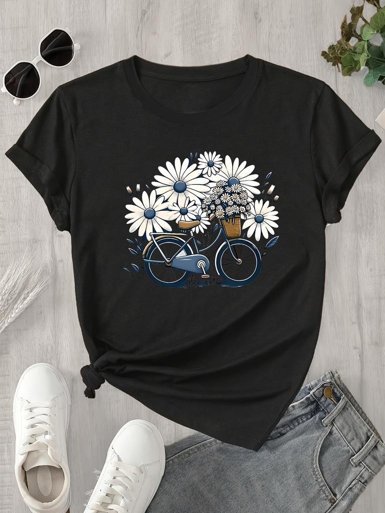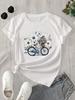 Breathable Spring Summer Machine Washable Regular Natureinspired Design Women's Casual Short Sleeve T-Shirt Bicycle Print
