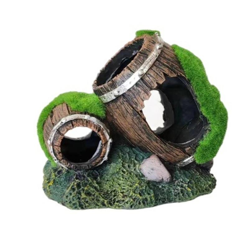 Aquariums Decoration Realistic Moss Covered Barrels Figure Safe Resin Shelter Cave For Fish Shrimp Underwater Hideouts