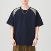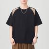 New Summer Round Neck Splicing Color-blocking Short-sleeved T-shirt for Men's Loose Japanese Five-point Sleeve T-shirt for Men