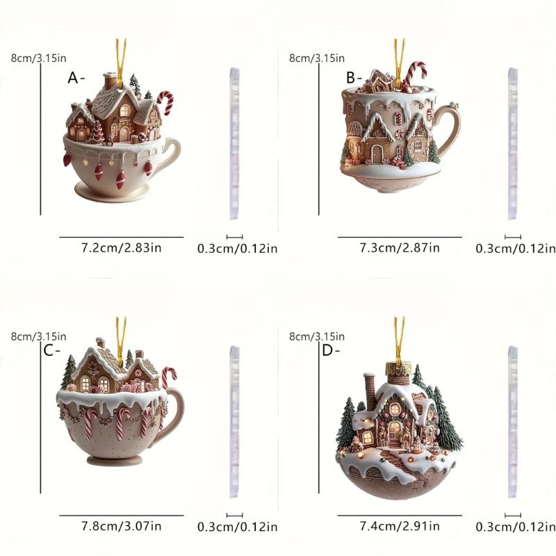 Acrylic Christmas Tree Ornament Cottage Warm Little Coffee Cup Hanging Decoration For Home Coffee House Plant
