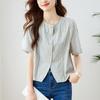 Retro Blue Striped Shirt for Women Design Short-sleeved Shirt for Summer New Small Shirt