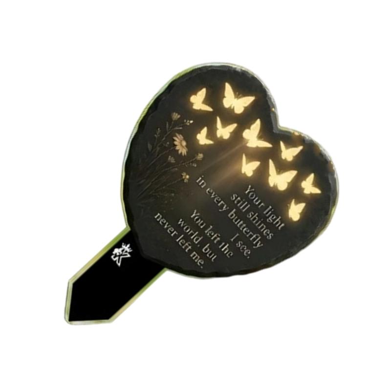 Meaningful Design,the memorial plaques for outdoors is designed into heart shape, with floral butterfly printed on it,elegant and beautiful, which can express your thoughts of the departed and ease your sadness.