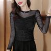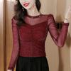 Bright Silk Mesh Top for Women Long-sleeved Base Shirt for Winter New Red Inner T-shirt Fashionable Small Shirt