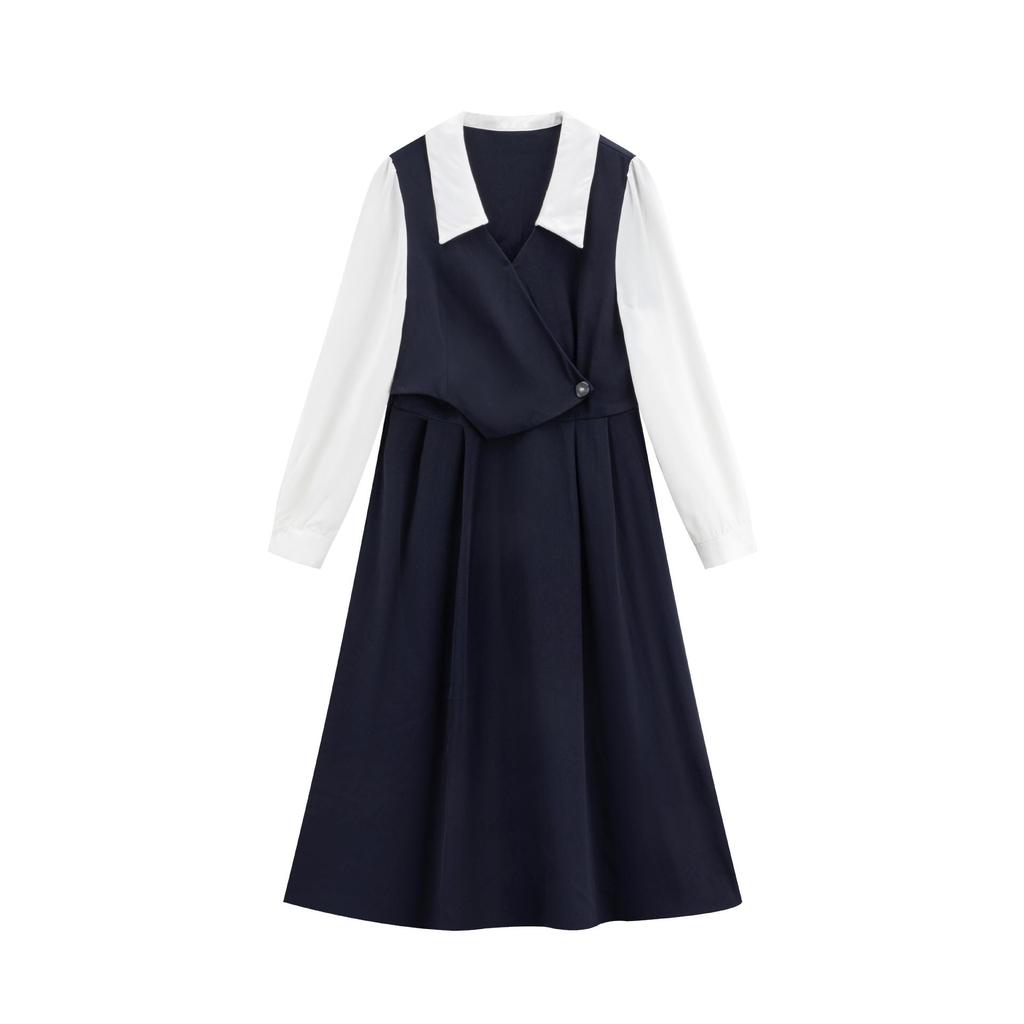 Autumn Fashionable Design Dress for Women's Fake Two-piece Commuting Dress