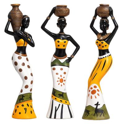 Beautiful Finish Uniquely Hand Crafted Home Dcor African Tribal Women Art Piece - (Set of 3, Multicolour), Resin