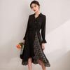New Spring Elegant Lapel Midi Skirt Contrasting Color Removable Belt Without Elastic Long Sleeves for Women