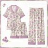 3 Pieces Set Night Wears for Women Summer New Short Sleeve Casual Striped Faux Silk Pijamas Set for Women Luxury Pyjamas Set