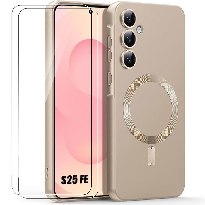 Magnetic Case - BOOLING - for Samsung Galaxy S25 FE - Golden Silicone - 2 Tempered Glasses