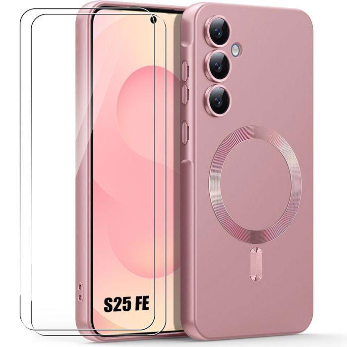 Coque Magnétique - BOOLING - pour Samsung Galaxy S25 FE - Anti-Rayures - Rose - 2 Verres Trempés
