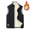 Fall Winter Men Vest Stand Collar Neck Zipper Closure Thick Plush Warm Windproof Solid Color Soft Plus Size Cardigan Waistcoat