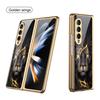 Luxury Plating Frame Case For Samsung Galaxy Z Fold 4 5G Painted Pattern Tempered Glass Hard Cover For Galaxy Z Fold5 4 3 Case