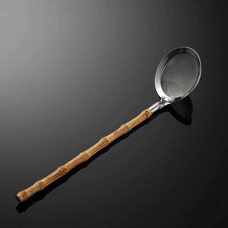 ZISIZ Stainless Steel Bamboo Handle Mini Strainer Scoop