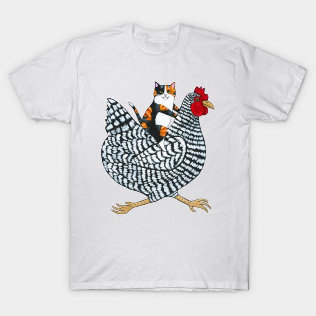 Men Black Print T-shirt Calico Cat Chicken Ride No-Cut Transfer Paper Print Cotton Tshirt
