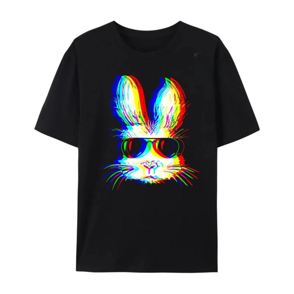 Rabbit Psychedelic Steam Wave Easter Electronic Music Carnival Electronic Dance Music Party Oversized T-shirt Men Designer Y2K