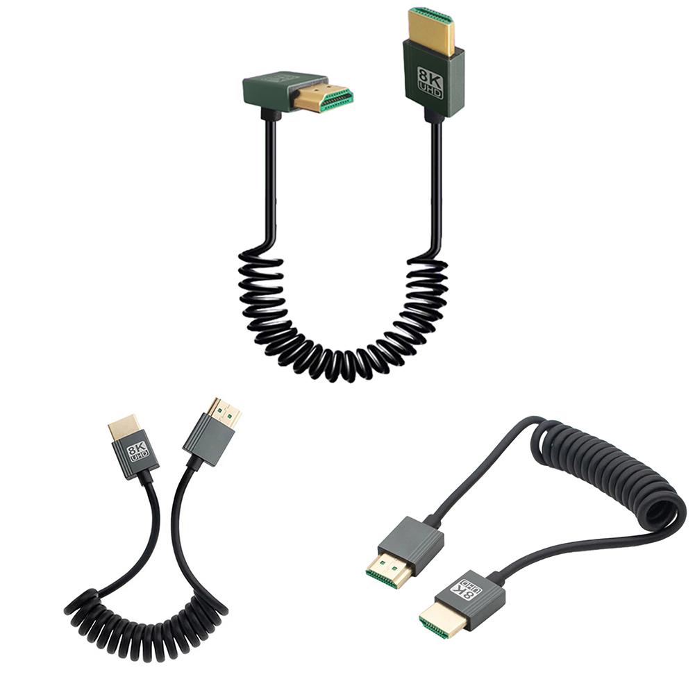 8K UHD Cable HD2.1 Stretch Spring Coiled HDMI-Compatible To Mini/Micro HD Cable for PS4 Laptop PC DVD Camera Monitor HDTV