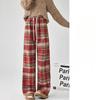 Plaid Pants for Women's Spring and Autumn New High-waist Draped Straight-leg Casual Small Retro Wool Wide-leg Pants