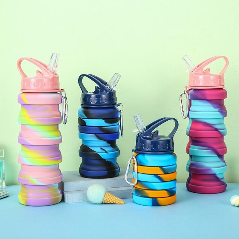 Folding Reusable Sports Water Bottles Leakproof Silicones With Carabiner for Outdoor Activity Water
