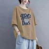 Tops Women Cotton Summer Large Size T-shirt Polo Neck Loose Printed Casual Pullover T-shirt Top