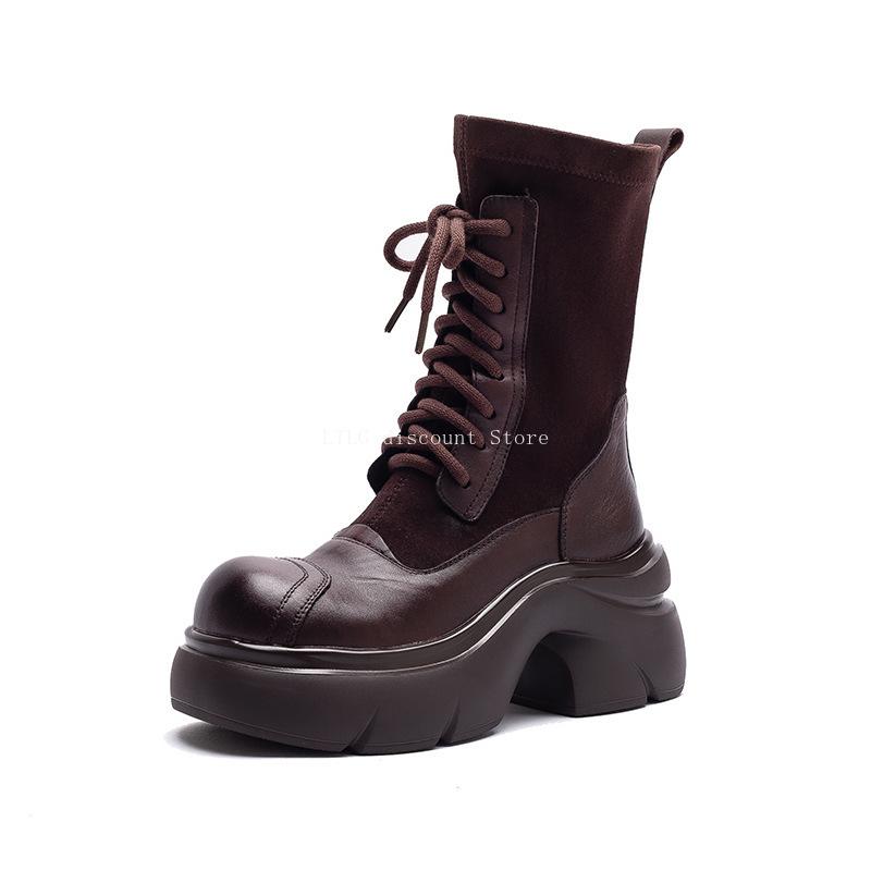Botas Mujer Height-increasing 7cm Boots Platform Chunky Heels Trend Punk Gothic Rock Women's Versatile Platform Ankle Boots