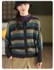 Johnature Women Vintage Striped Sweaters O-Neck Long Sleeve Button Autumn Knitted Casual Female Soft Sweaters