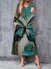 2025 Autumn and Winter New Women Casual Fashion Dress 3D Butterfly Print Long Sleeve V-Neck A-Line Dresses