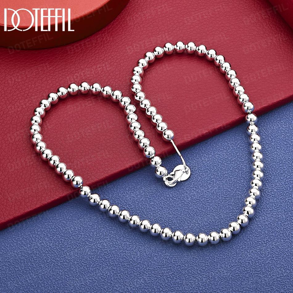 925 Sterling Silver 16-30 Inches 6mm Bead Chain Fashion Necklace Wedding Jewelry