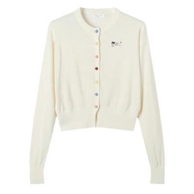 Autumn Preppy Style Knit Cardigan Bear Embroidery Slim Fit Versatile Long Sleeve Round Neck Top Women