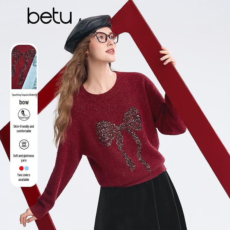 Betu Women's Sequin Bow Pullover Sweater