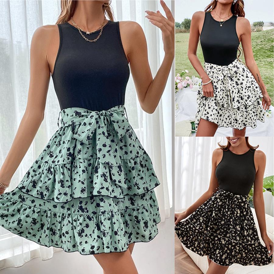 Summer New Women Sleeveless Printed Backless Dress Ready