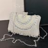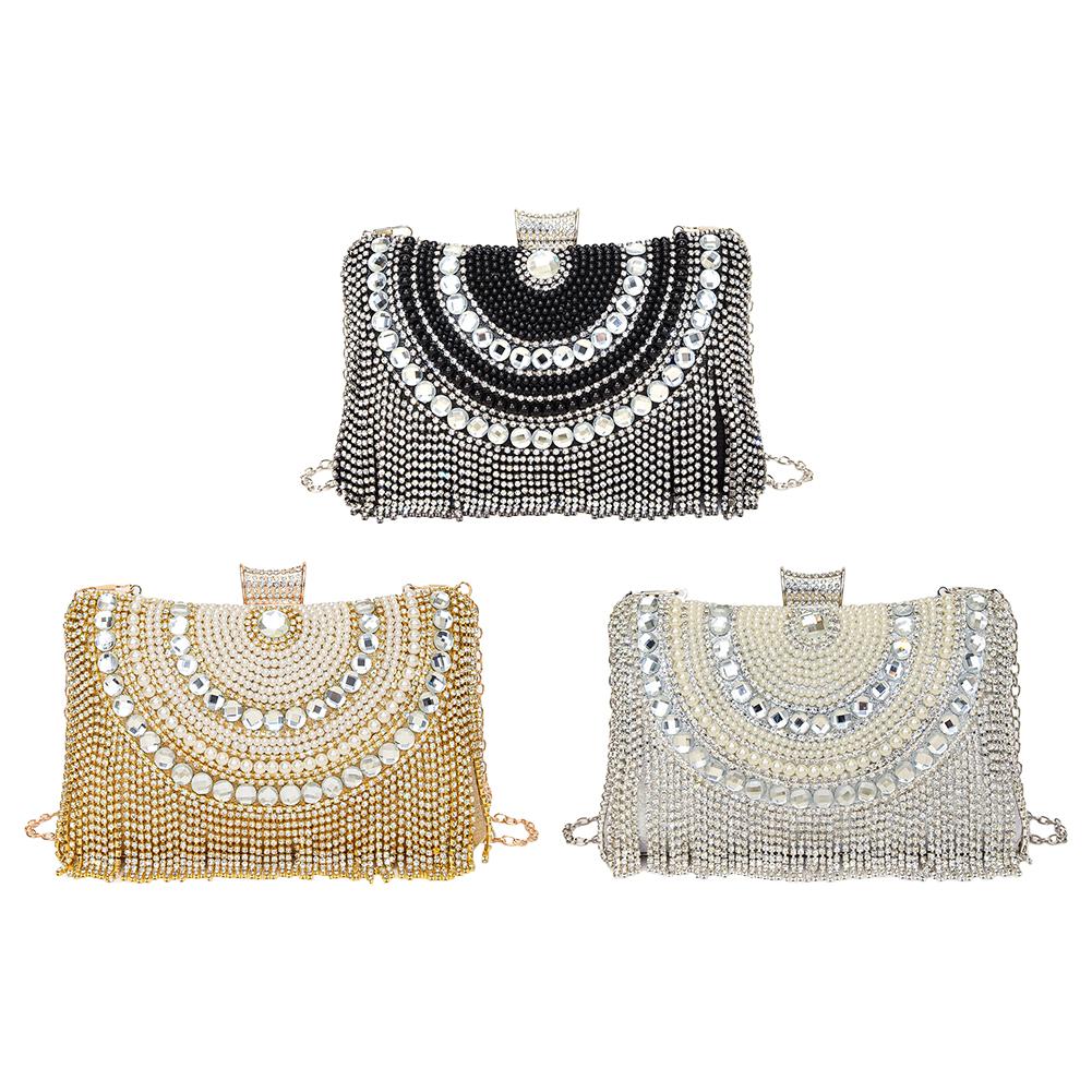 Women Rhinestones Tassel Shouder Bag with Chain Metal Snap Sling Bag Luxury Satchel Bag Female Wedding Club Bag