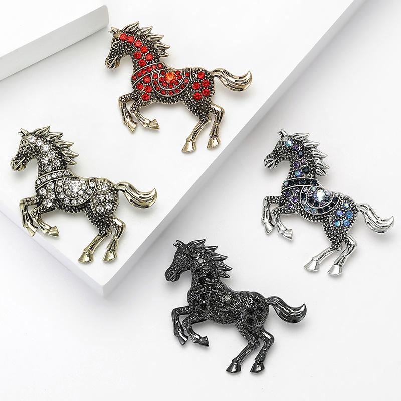Creative Rhinestone Horse Brooches Party Favors Animal Lapel Pins Horse Head Brooches Chinese New Year Couple Gift