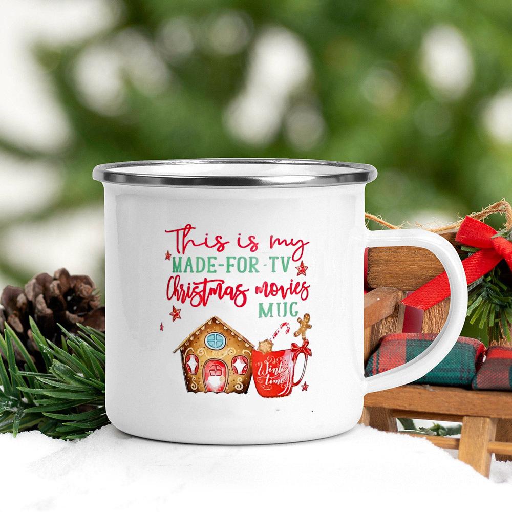 Christmas Printed Coffee Mugs With Handle Breakfast Milk Cups Enamel Drinking Cup Party Home Decorations Gifts for Friend Family