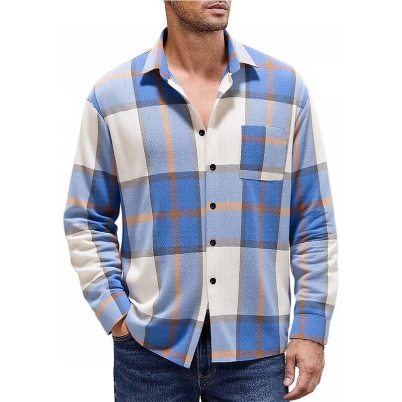 New Men's Plaid Spring Autumn Long-sleeved Shirt Jacket European American Brushed Cardigan Trendy