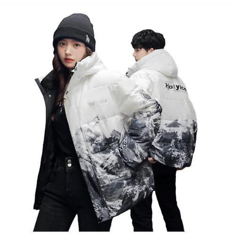 2022 New Arrival Women's Down Jacket Hooded Down Jacket Short Thickened Snow Mountain Print Jacket Trend Couples Down Jacket For Men
