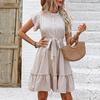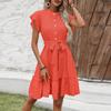 Holiday Breeze Ruffled Dress Summer Women's Elegant Lace Short Sleeve Tie-Up A-Line Dress
