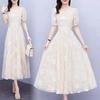 Summer Newest Chiffon Dress for Girls, Waist Slimming Bubble Sleeve French Style Maxi Dress