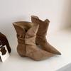 Fashion Street Style Vintage Ankle Boots Women Winter Pointed Toe Thin Low Heel Shoes SHort Botas De Mujer