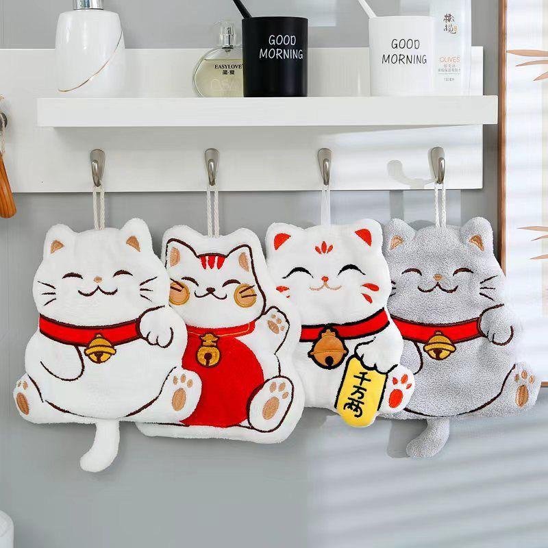 Japanese Style Lucky Cat Wall Mounted Convenient Hand Towel Cute Cartoon Children'S Hand Towel Thickened Absorbent Towel