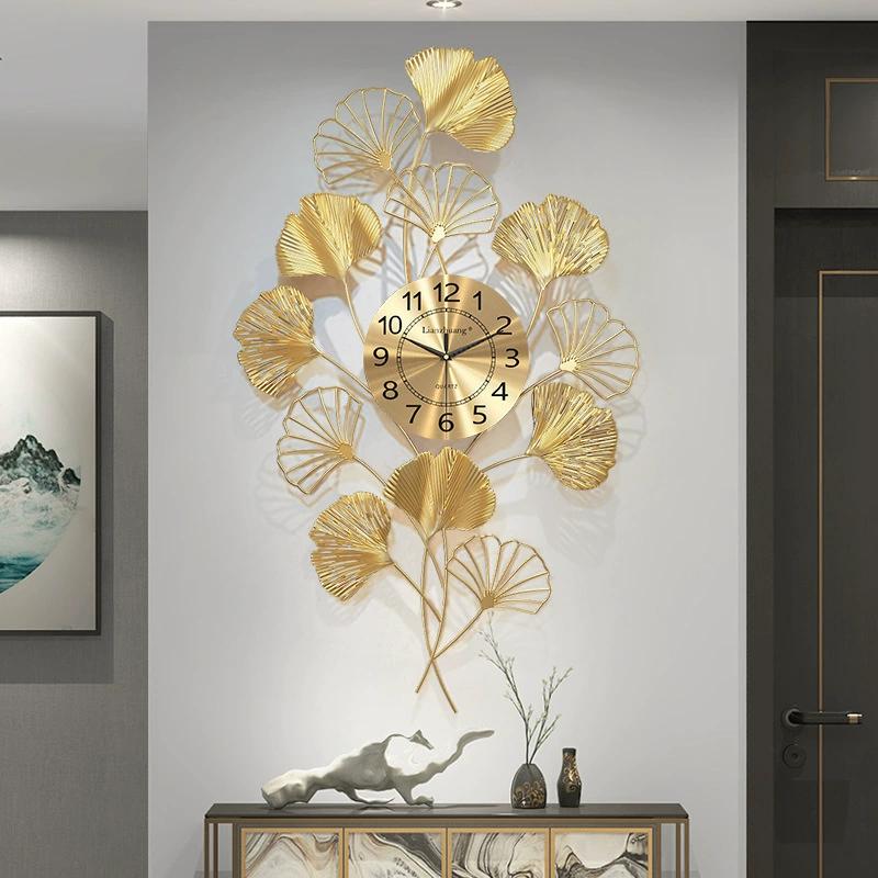 Modern Large Wall Clock 3d Gold Decoration Living Room Creative Leaf Luxury Clocks Home Decor Horloge Murale Gift