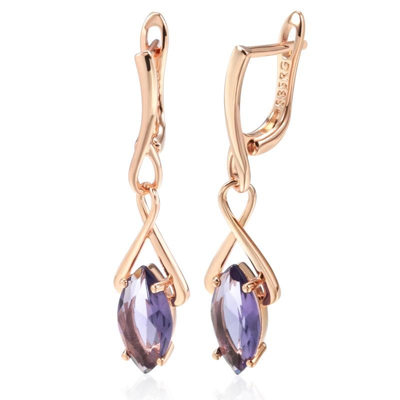Purple Natural Zircon Long Drop Earrings For Women Fashion Rose Gold Rhombus Accessories Wedding Daily Jewelry