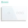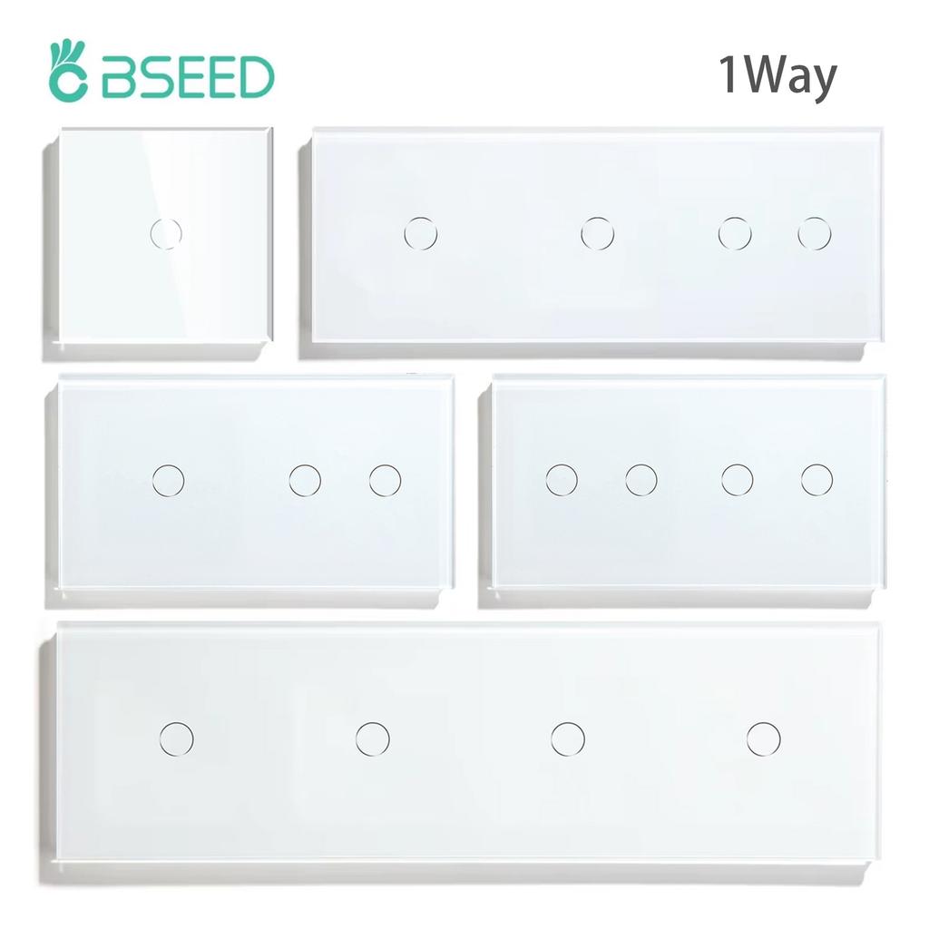 BSEED 1/2/3Gang Touch Switch Double Light Switch Triple Sensor Switch 1Way EU Standard Glass Panel Blue Back Light White Series