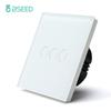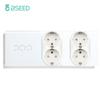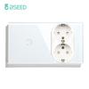 BSEED 1/2/3Gang Touch Light Switch With Power Socket 1Way Double EU Wall Sockets Dual Plug 16A Glass Panel Blue Backlight White