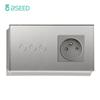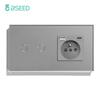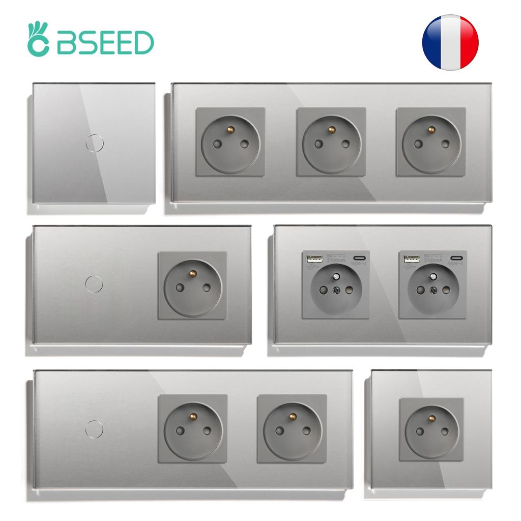 BSEED 1/2/3Gang Touch Light Switches 1Way Sensor Switch With Type-C USB French Wall Sockets Glass Panel Blue Backlight Gray